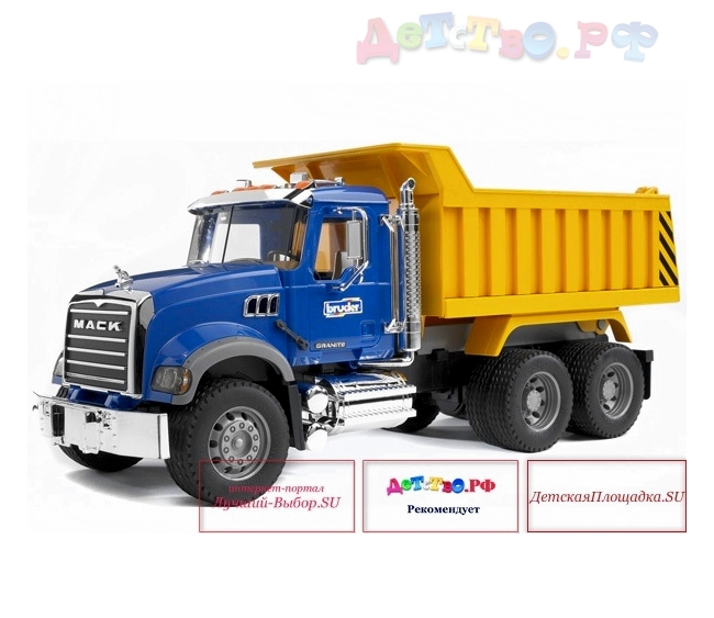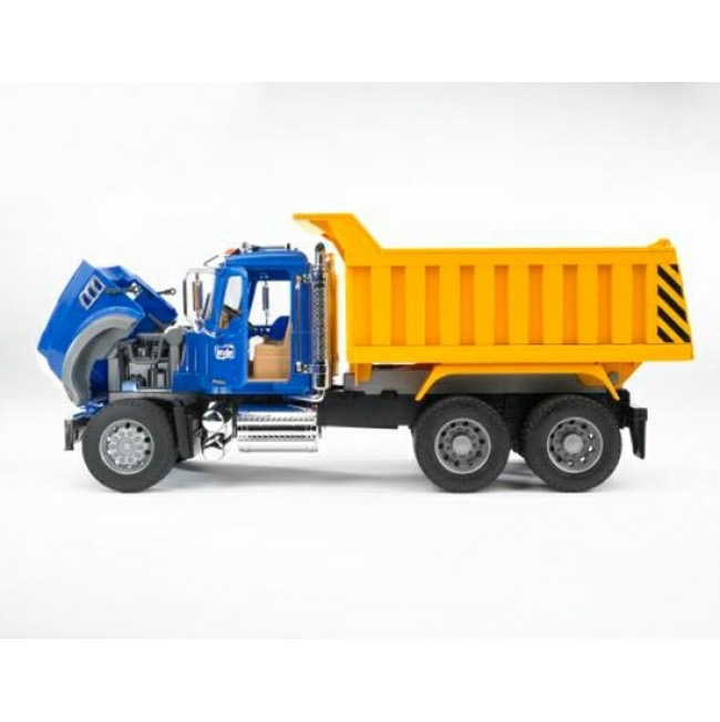 Самосвал MACK является одной из самых популярных игрушек, которые выпускаются данным производителем. Он создан в масштабе 1 к 16, поэтому может использоваться не только самостоятельно, но и в комплекте с иными моделями этой серии Брудер. В этом автомобиле открываются двери кабины и капот, складываются внешние зеркала заднего вида и опрокидывается кузов (он также способен фиксироваться в нескольких положениях).